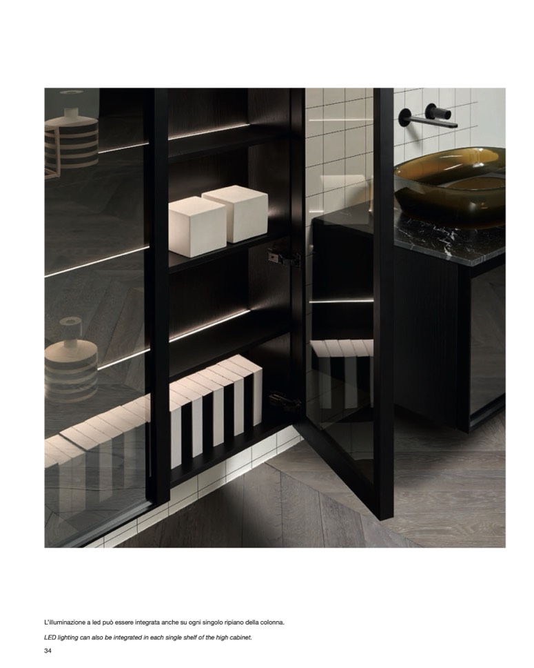 LED lighting can also be integrated in each single shelf of the high cabinet.