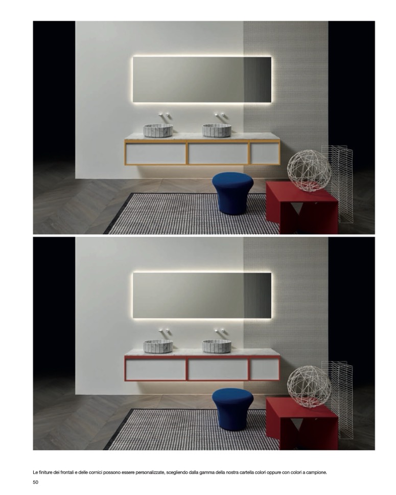 Le finiture dei frontali e delle cornici possono essere personalizzate, scegliendo dalla gamma della nostra cartella colori oppure con colori a campione.