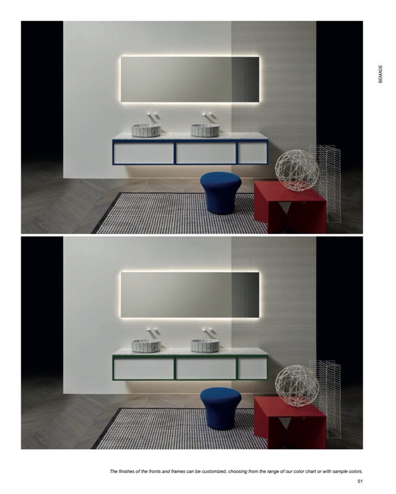 The finishes of the fronts and frames can be customized, choosing from the range of our color chart or with sample colors.