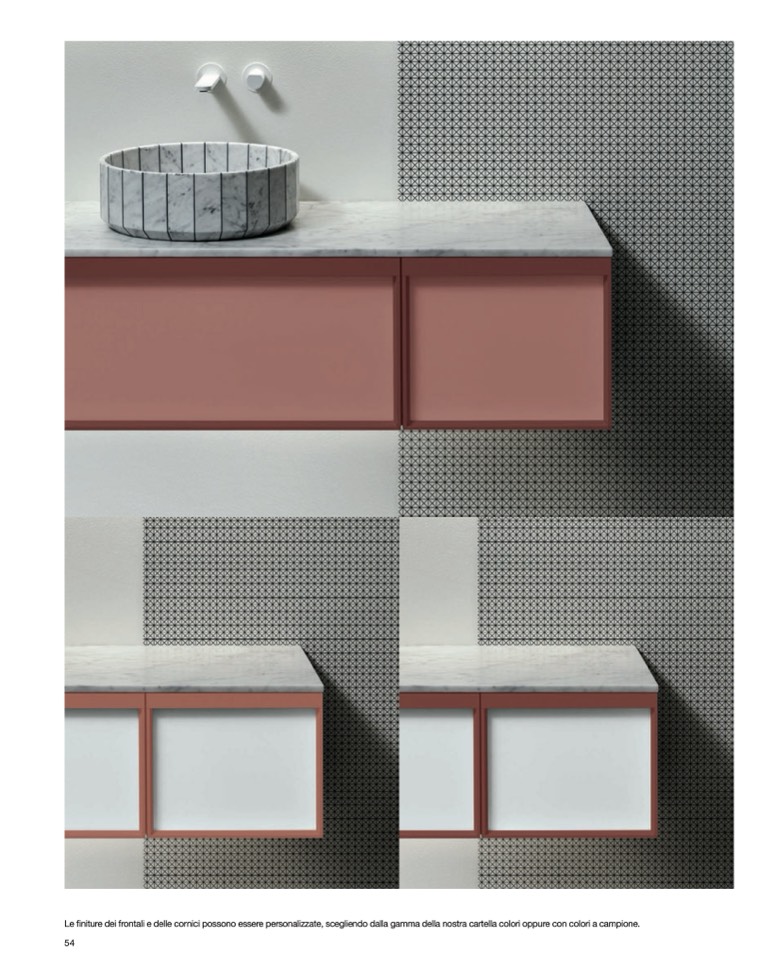 Le finiture dei frontali e delle cornici possono essere personalizzate, scegliendo dalla gamma della nostra cartella colori oppure con colori a campione.