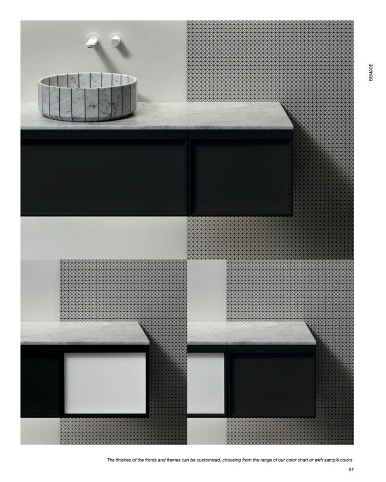 The finishes of the fronts and frames can be customized, choosing from the range of our color chart or with sample colors.