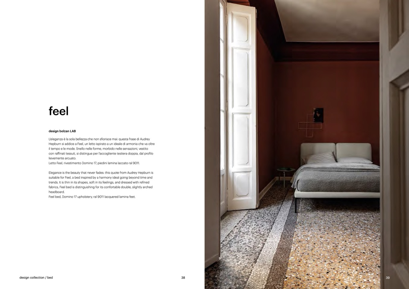 suitable for Feel, a bed inspired by a harmony ideal going beyond time and