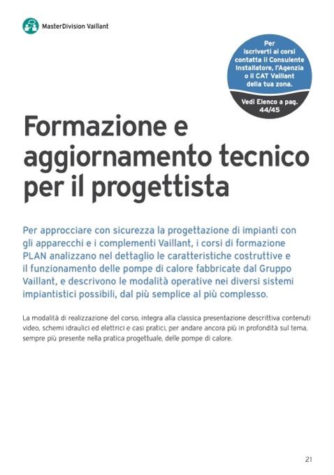gli apparecchi e i complementi Vaillant, i corsi di formazione