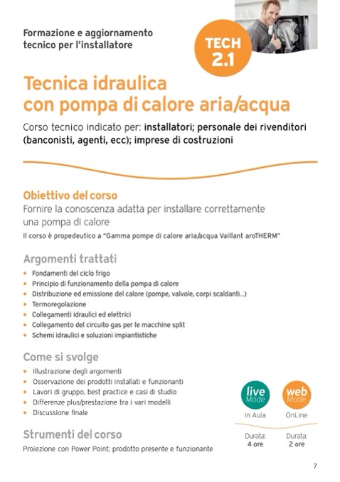 Il corso è propedeutico a “Gamma pompe di calore aria/acqua Vaillant aroTHERM”