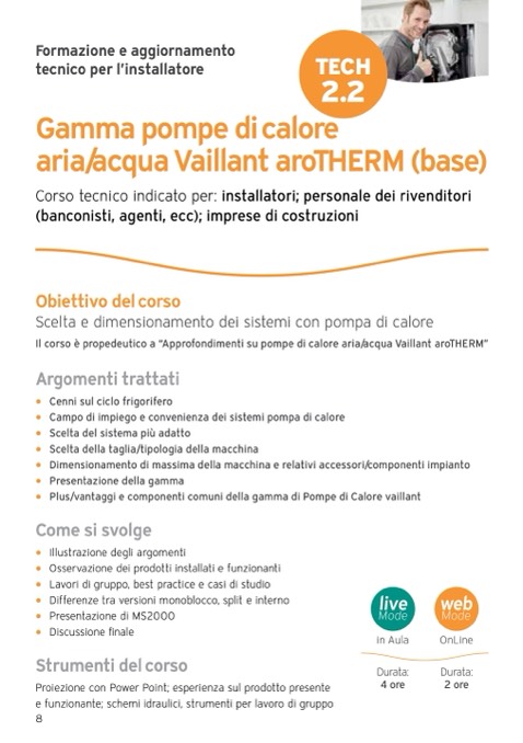 Il corso è propedeutico a “Approfondimenti su pompe di calore aria/acqua Vaillant aroTHERM”