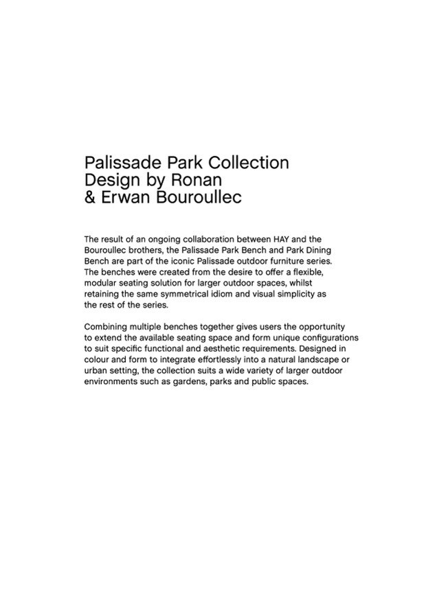 Bouroullec brothers, the Palissade Park Bench and Park Dining