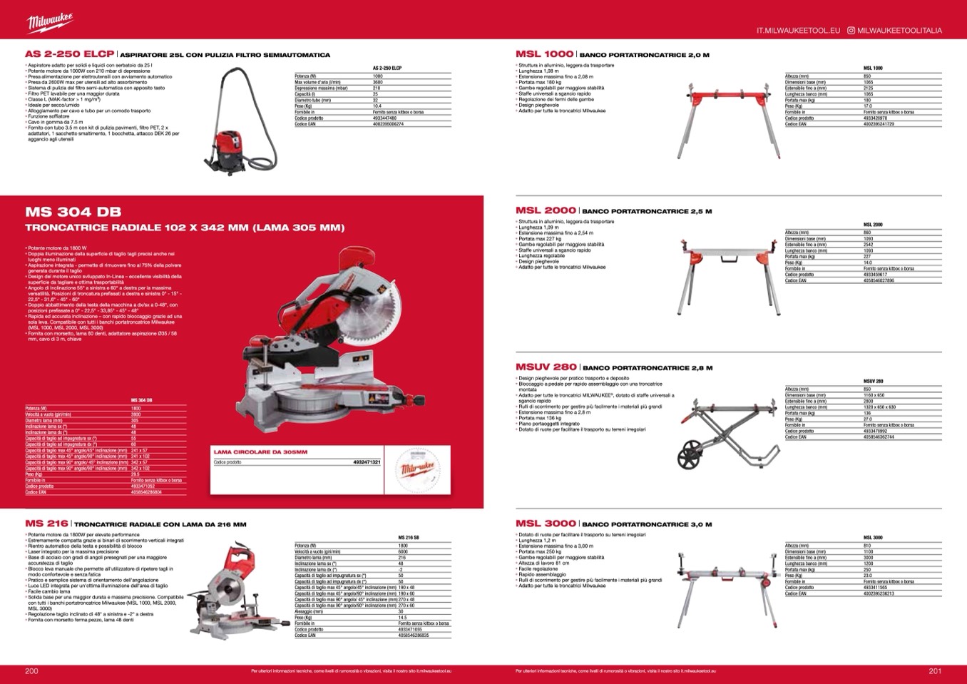 con tutti i banchi portatroncatrice Milwaukee (MSL 1000, MSL 2000,