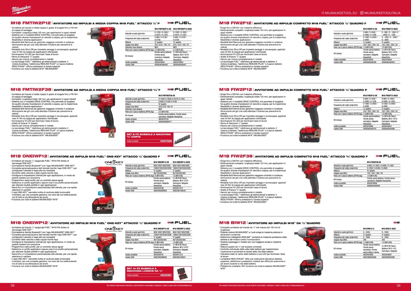 Per ulteriori informazioni tecniche, come livelli di rumorosità o vibrazioni, visita il nostro sito it.milwaukeetool.eu