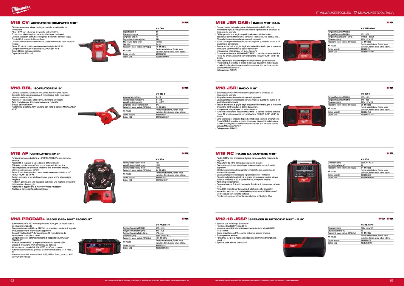 Per ulteriori informazioni tecniche, come livelli di rumorosità o vibrazioni, visita il nostro sito it.milwaukeetool.eu
