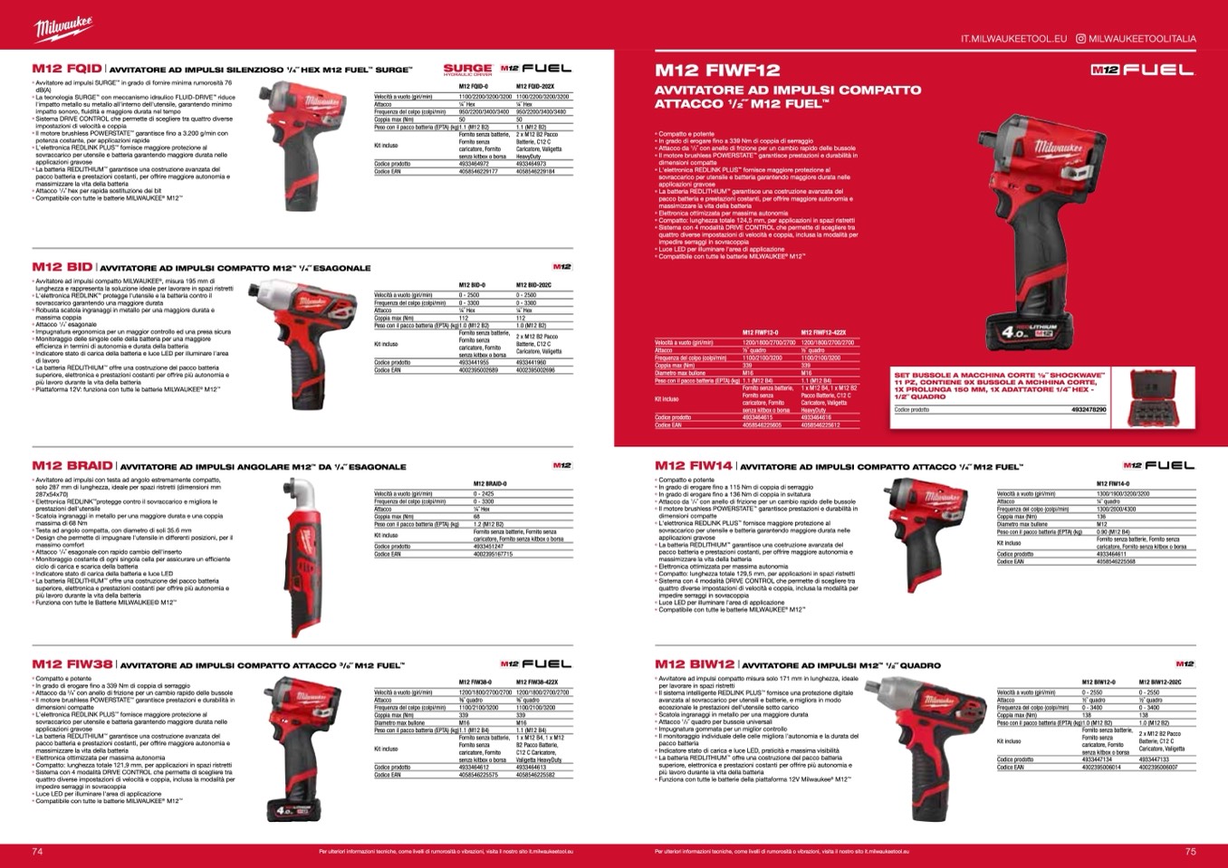 Per ulteriori informazioni tecniche, come livelli di rumorosità o vibrazioni, visita il nostro sito it.milwaukeetool.eu