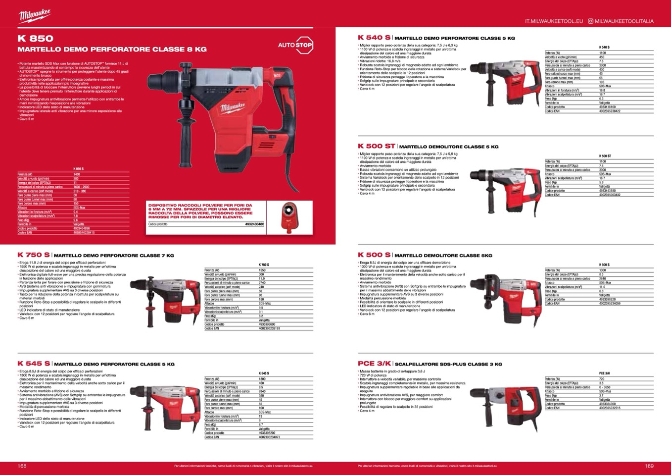 Per ulteriori informazioni tecniche, come livelli di rumorosità o vibrazioni, visita il nostro sito it.milwaukeetool.eu