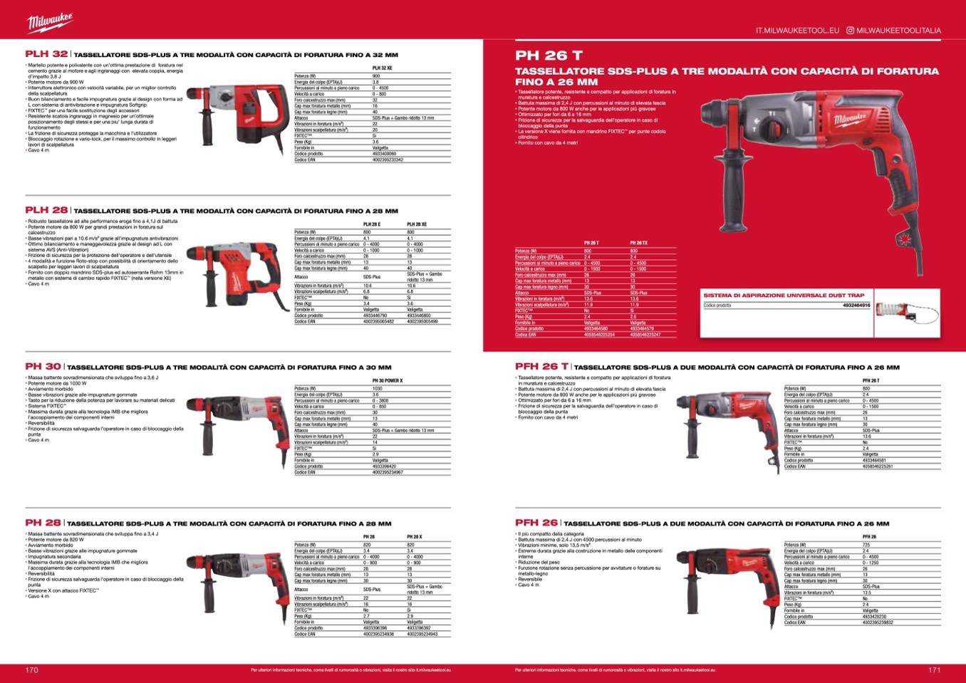 Per ulteriori informazioni tecniche, come livelli di rumorosità o vibrazioni, visita il nostro sito it.milwaukeetool.eu
