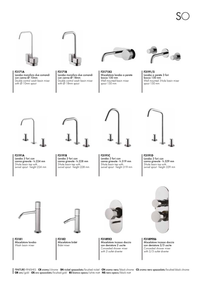 OR oro/gold OS oro spazzolato/brushed gold BS bianco opaco/white matt