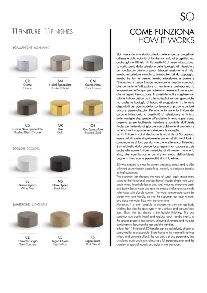 In fact, the 11 finishes of SO handles can be individually chosen or