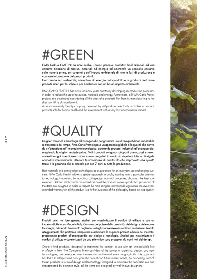 in order to reduce the use of resources, materials and energy. Furthermore, all FIMA Carlo Frattini