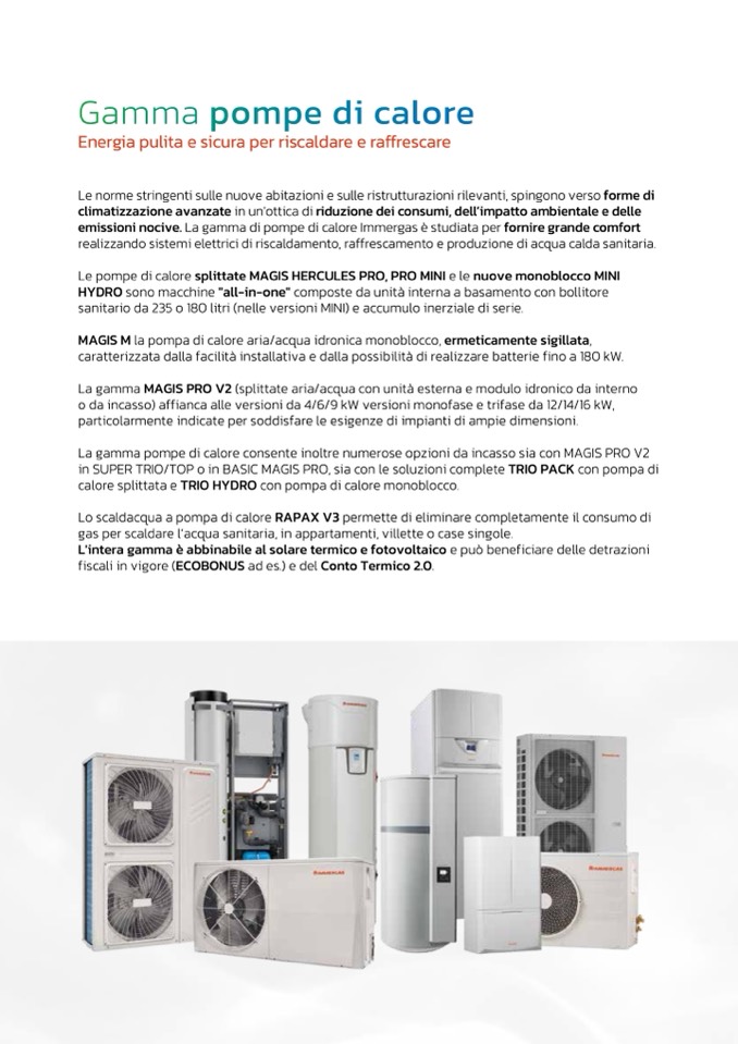 emissioni nocive. La gamma di pompe di calore Immergas è studiata per fornire grande comfort