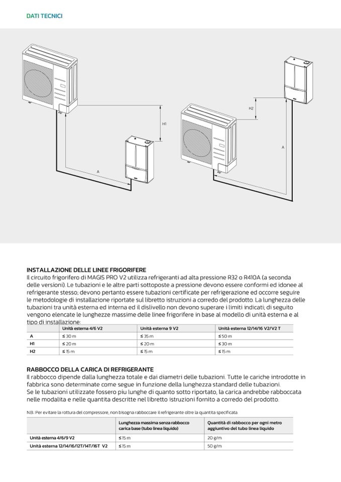 Il circuito frigorifero di MAGIS PRO V2 utilizza refrigeranti ad alta pressione R32 o R410A (a seconda