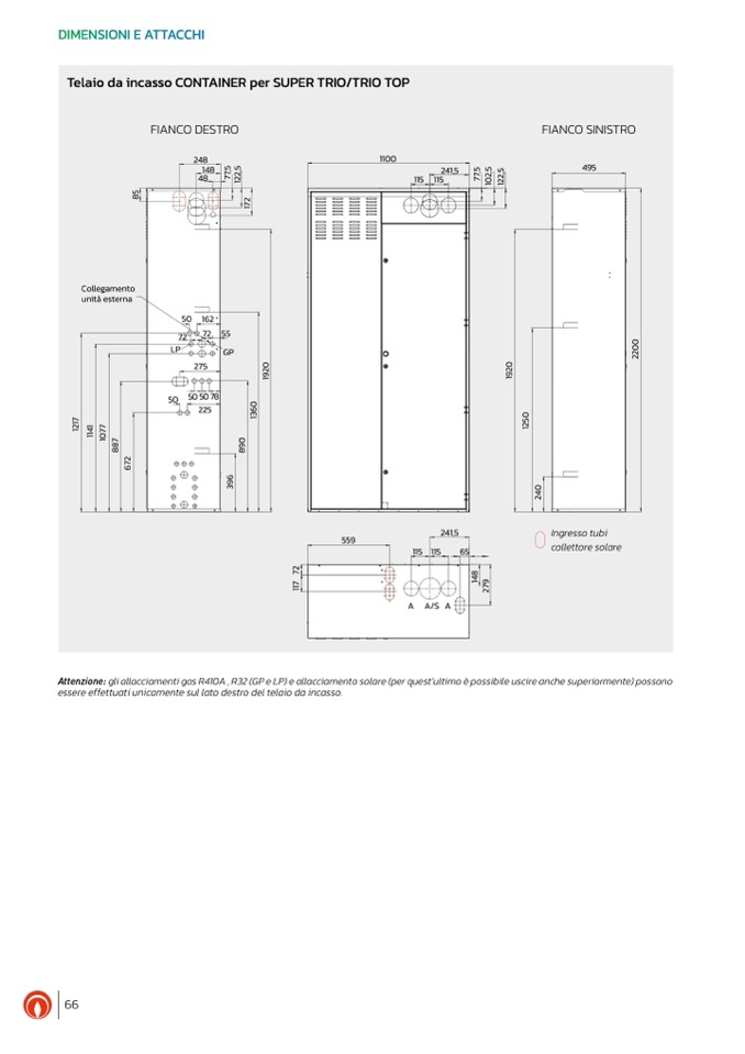 Attenzione: gli allacciamenti gas R410A , R32 (GP e LP) e allacciamento solare (per quest’ultimo