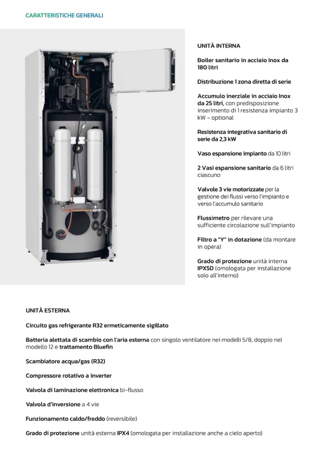 Grado di protezione unità esterna IPX4 (omologata per installazione anche a cielo aperto)