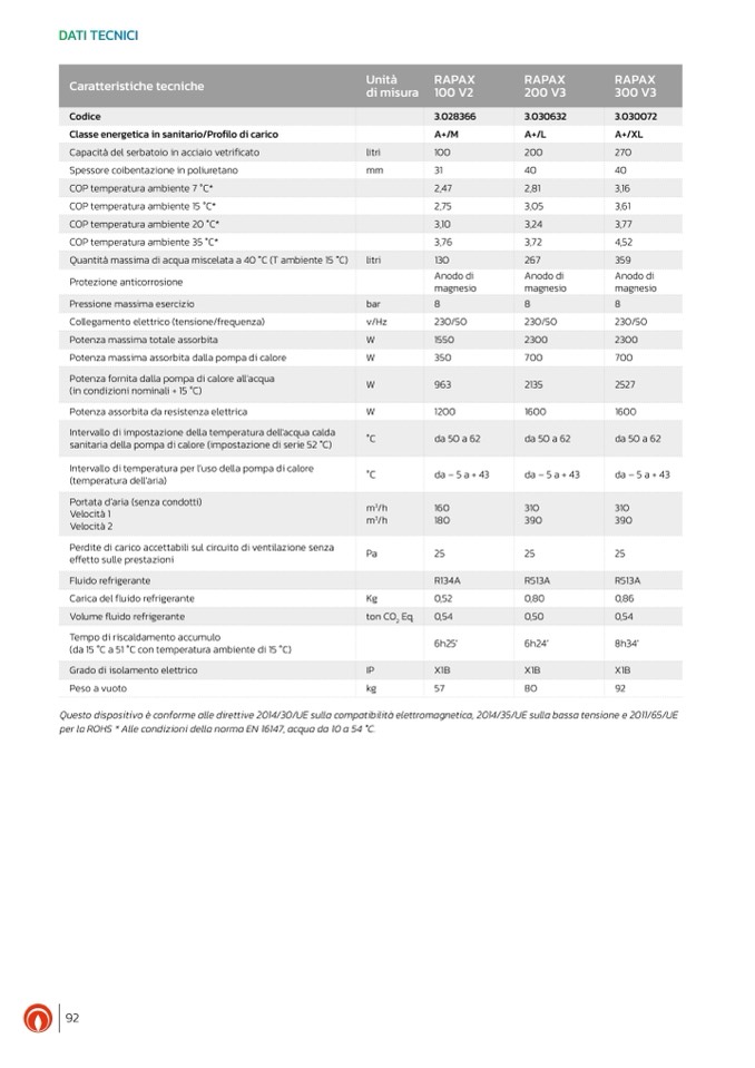 per la ROHS * Alle condizioni della norma EN 16147, acqua da 10 a 54 °C.