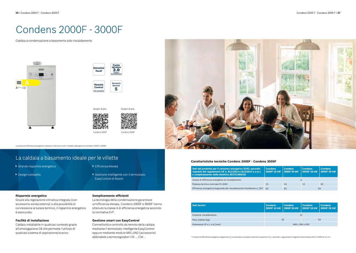 La classe di efficienza energetica indicata si riferisce a tutti i modelli della gamma Condens 2000F e 3000F