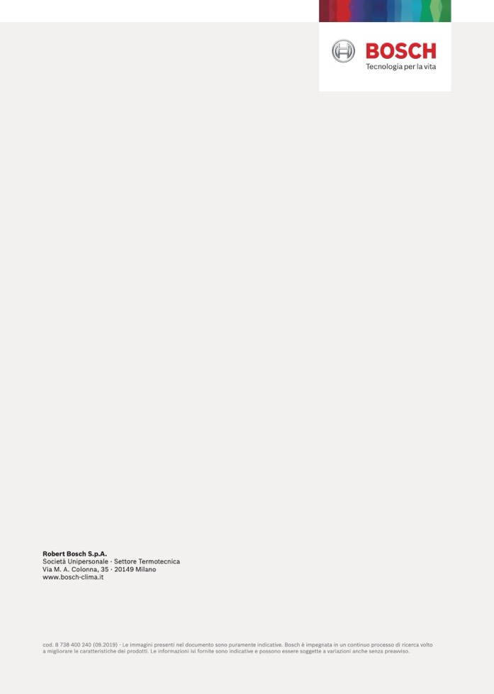 cod. 8 738 400 240 (09.2019) - Le immagini presenti nel documento sono puramente indicative. Bosch è impegnata in un continuo processo di ricerca volto