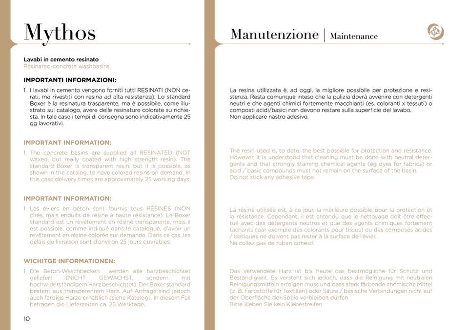 1. I lavabi in cemento vengono forniti tutti RESINATI (NON ce-