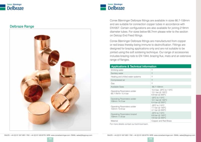 Conex Bänninger Delbraze fittings are available in sizes 66.7-159mm