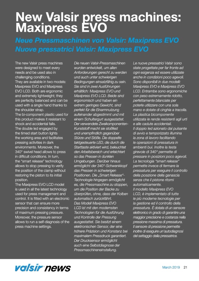 Neue Pressmaschinen von Valsir: Maxipress EVO