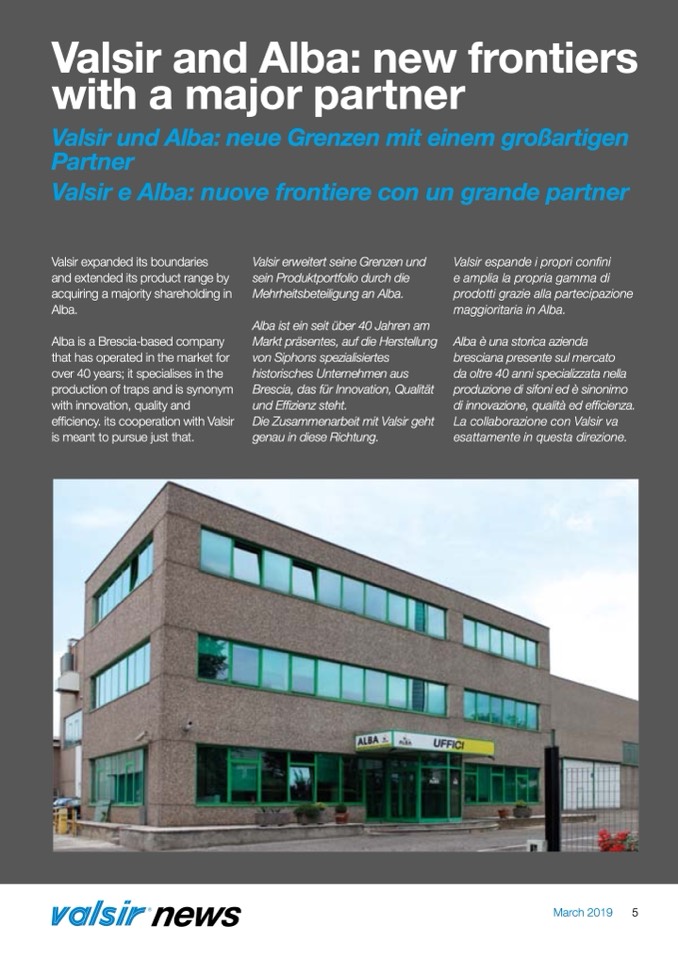 Valsir and Alba: new frontiers
