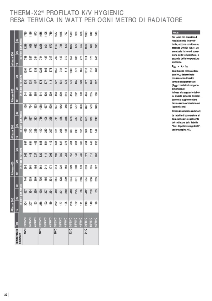 del radiatore (cfr. Tabella