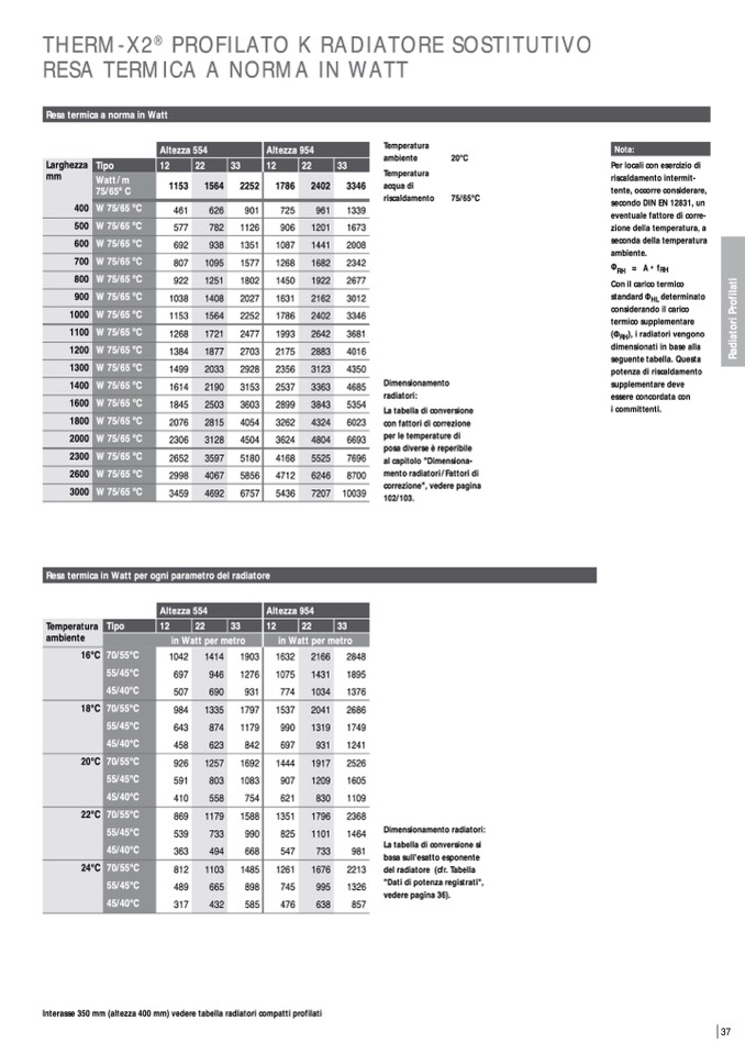 Interasse 350 mm (altezza 400 mm) vedere tabella radiatori compatti profilati
