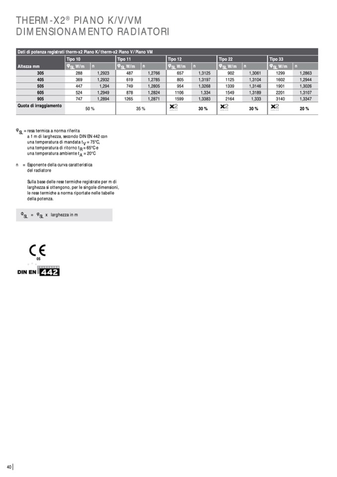 a 1 m di larghezza, secondo DIN EN 442 con