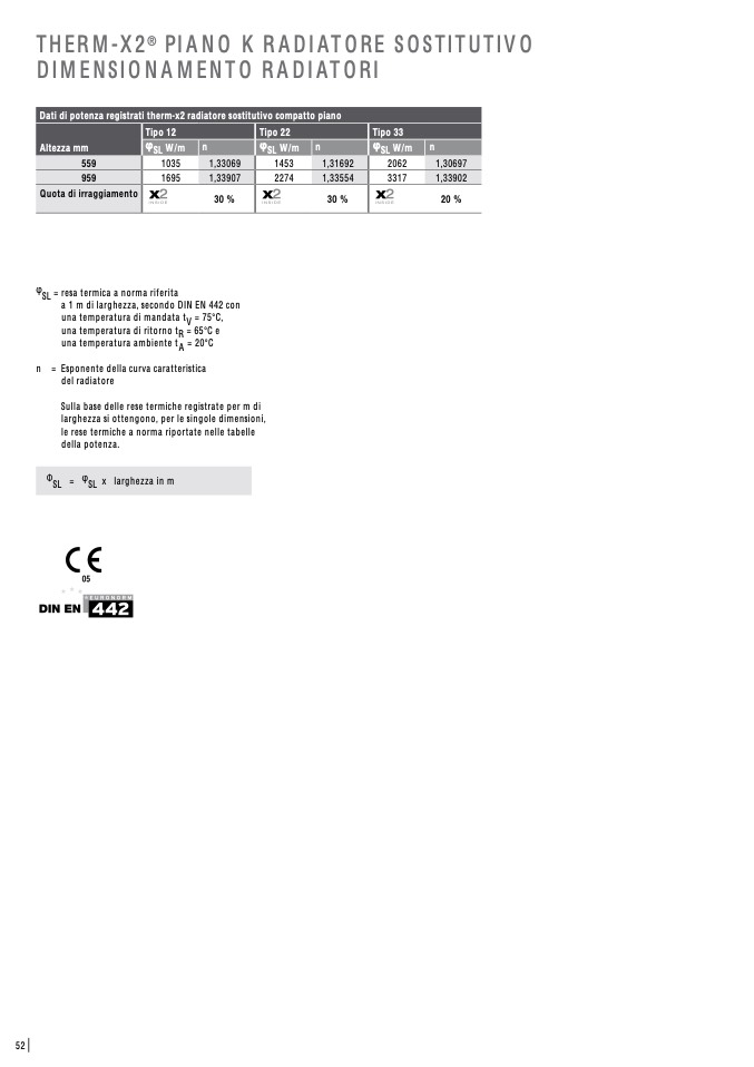 Dati di potenza registrati therm-x2 radiatore sostitutivo compatto piano