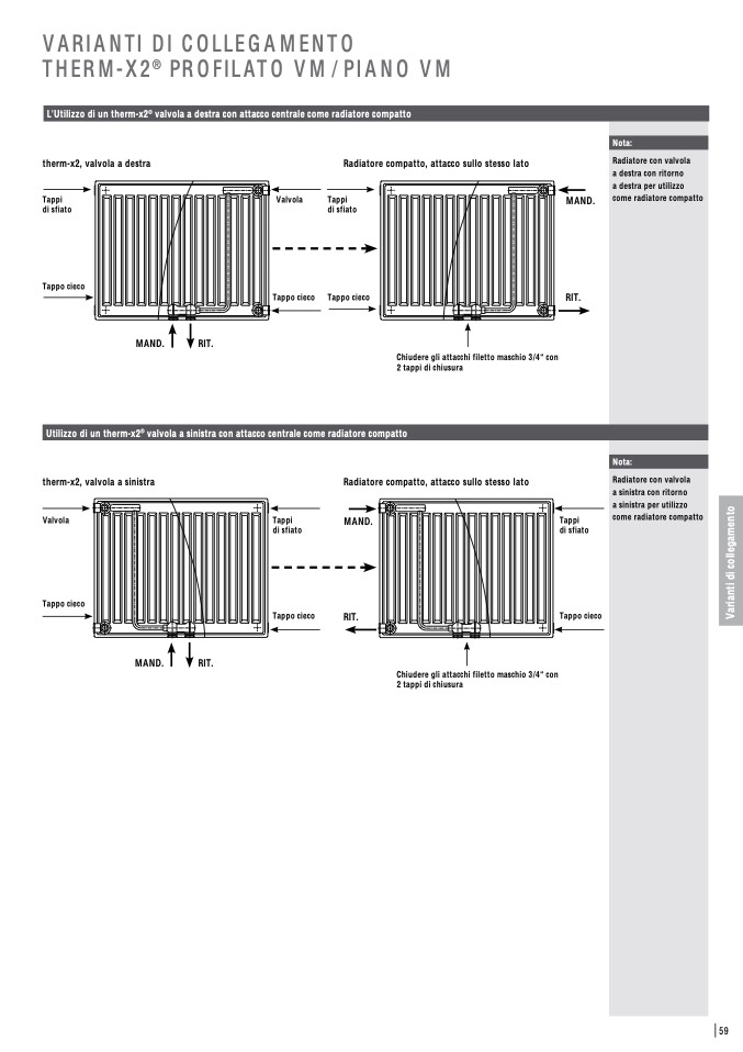 valvola a destra con attacco centrale come radiatore compatto