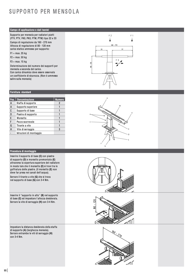 Supporto per mensola per radiatori piatti