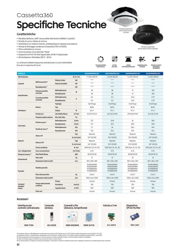 • Pompa di drenaggio condensa incorporata (750 mmH2O);