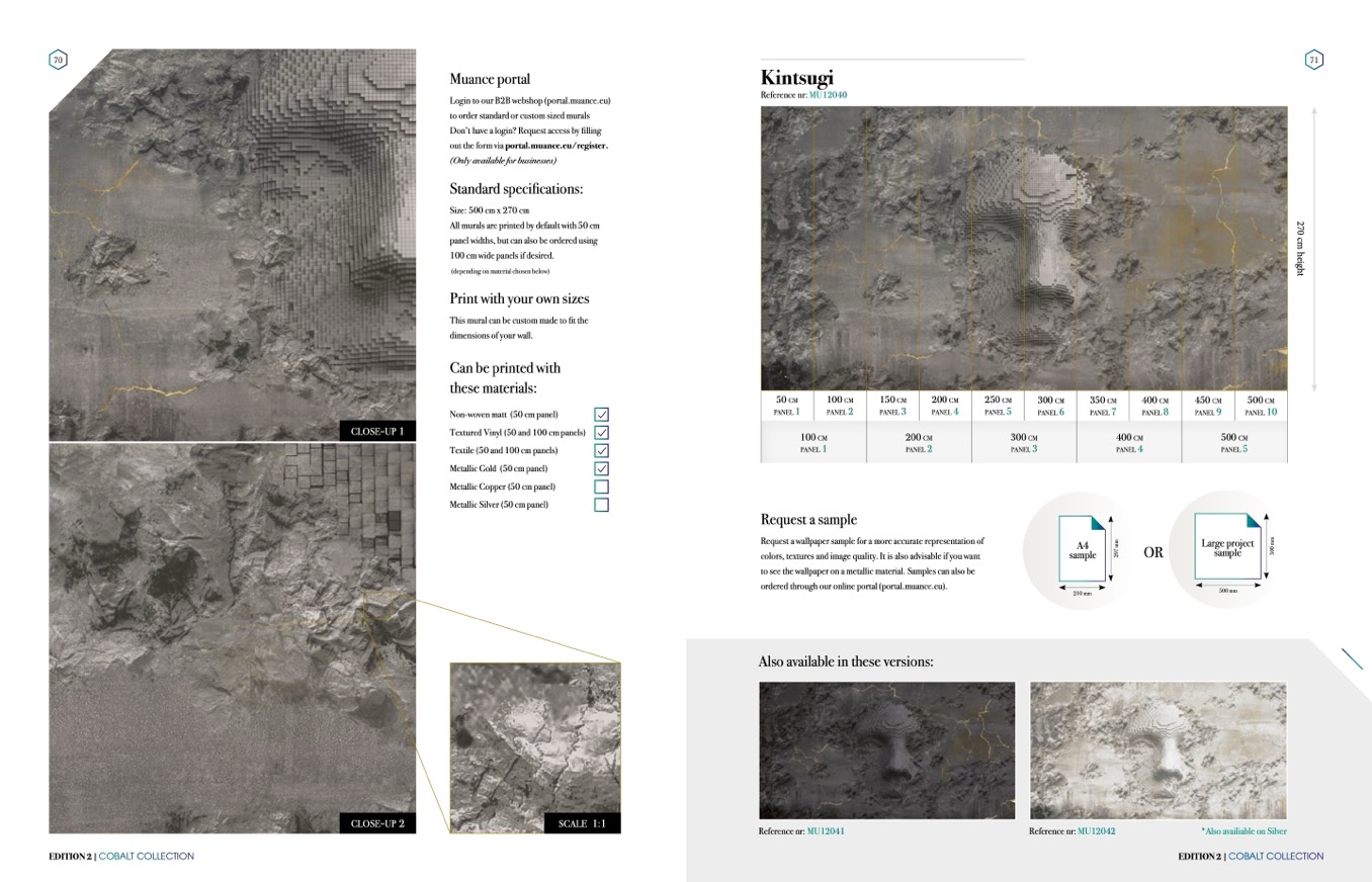 to see the wallpaper on a metallic material. Samples can also be