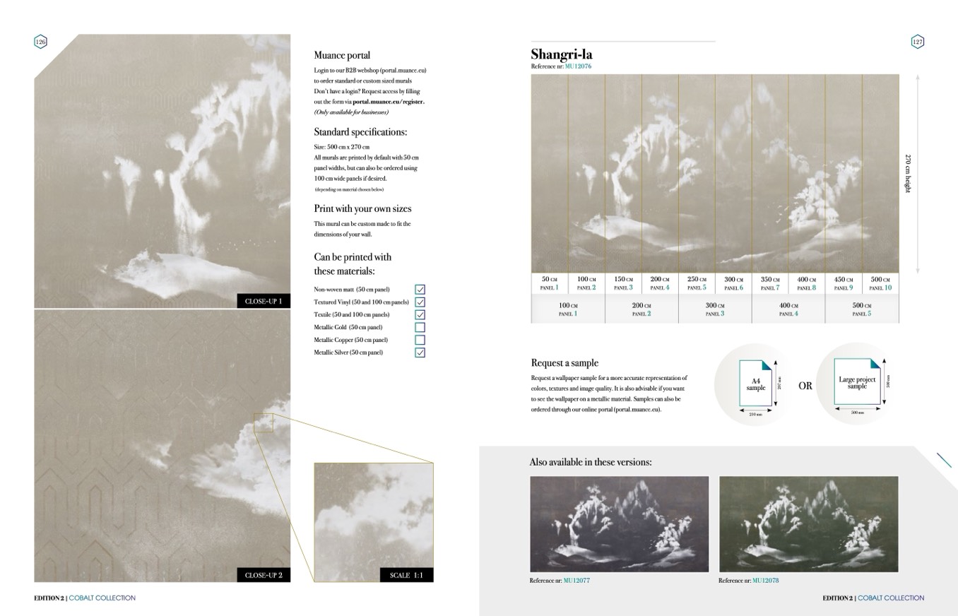 to see the wallpaper on a metallic material. Samples can also be