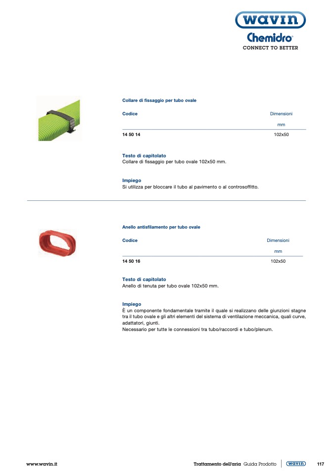 tra il tubo ovale e gli altri elementi del sistema di ventilazione meccanica, quali curve,