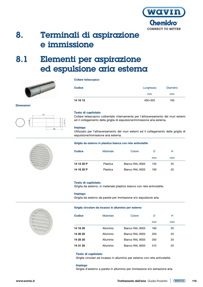 ed il collegamento della griglia di espulsione/immissione aria esterna.