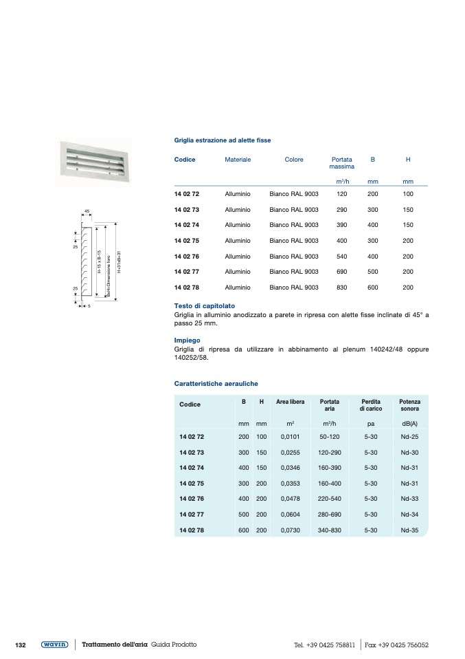Griglia di ripresa da utilizzare in abbinamento al plenum 140242/48 oppure