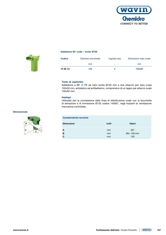 di estrazione o di immissione Ø125 codice 145051, negli impianti di ventilazione