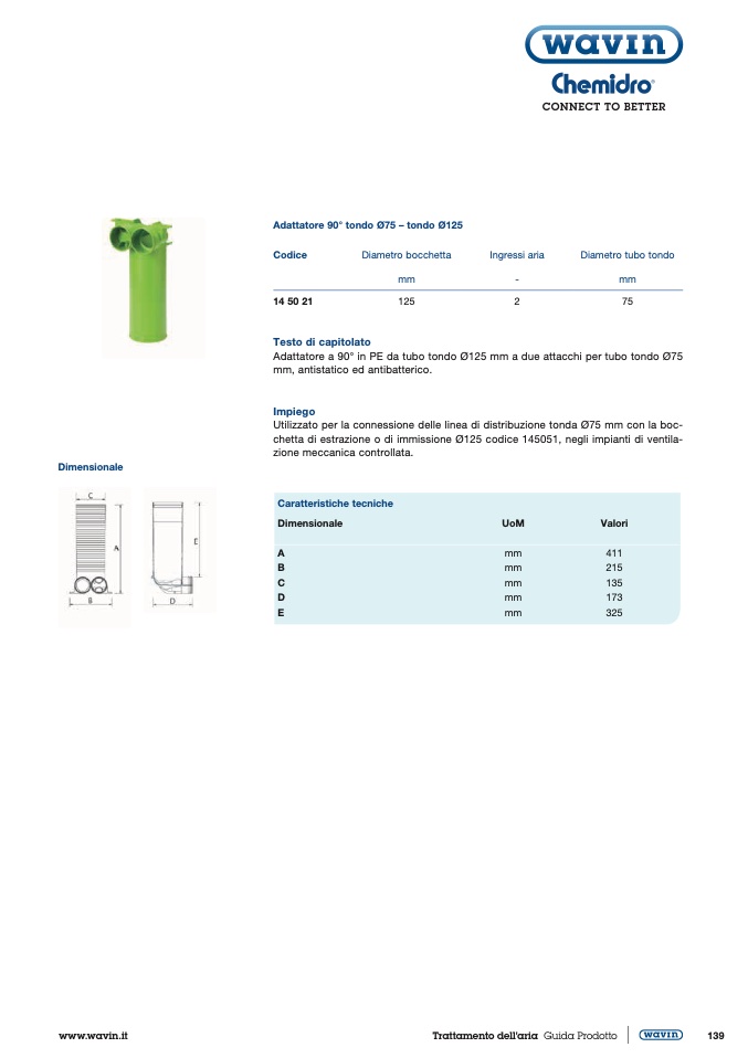 Adattatore 90° tondo Ø75 – tondo Ø125