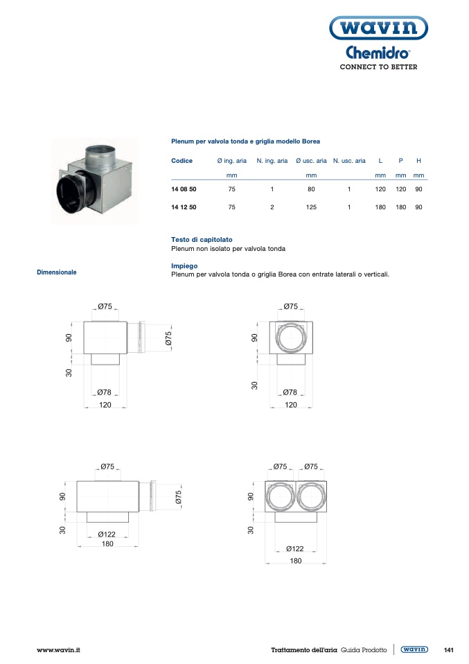 Plenum per valvola tonda o griglia Borea con entrate laterali o verticali.
