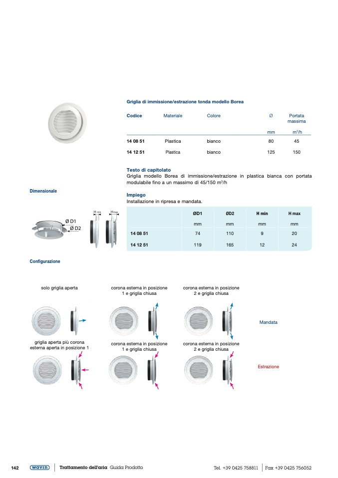 Griglia di immissione/estrazione tonda modello Borea