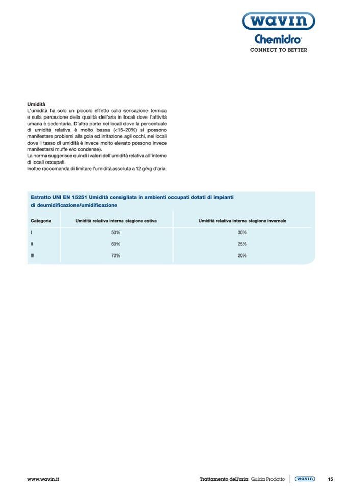 Estratto UNI EN 15251 Umidità consigliata in ambienti occupati dotati di impianti