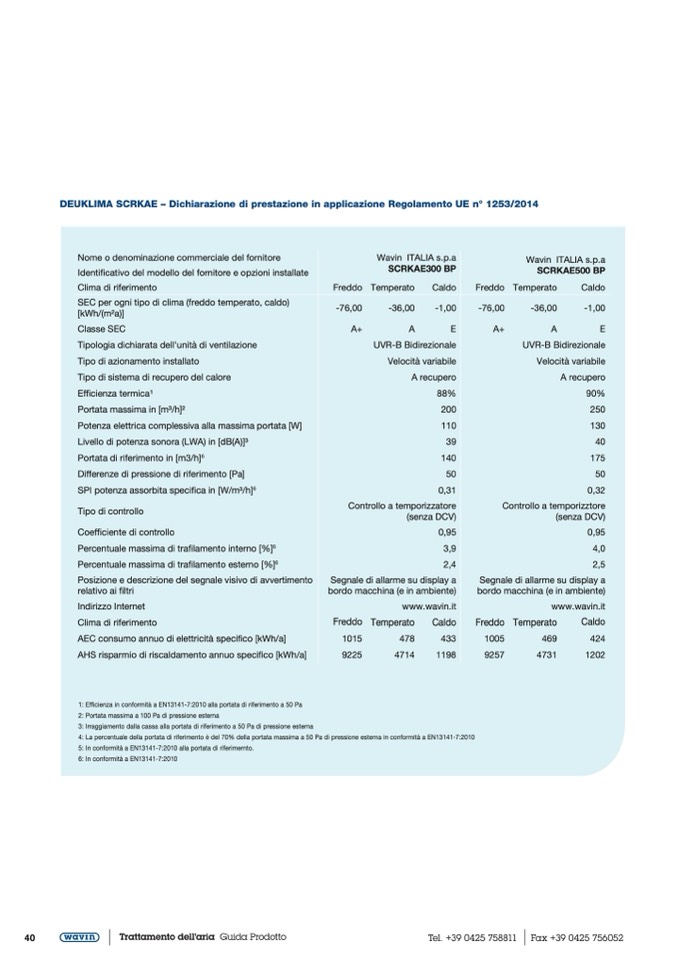DEUKLIMA SCRKAE – Dichiarazione di prestazione in applicazione Regolamento UE n° 1253/2014