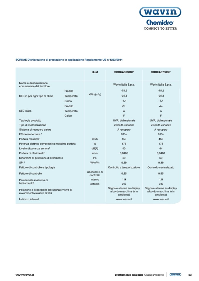 SCRKAE Dichiarazione di prestazione in applicazione Regolamento UE n°1253/2014