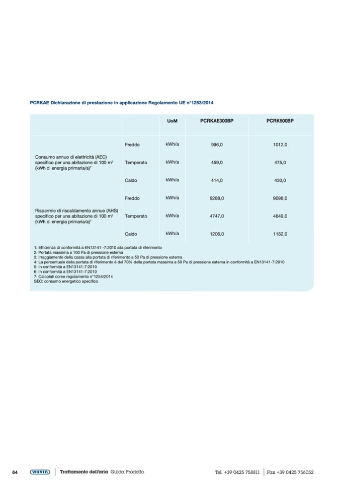 4: La percentuale della portata di riferimento è del 70% della portata massima a 50 Pa di pressione esterna in conformità a EN13141-7:2010